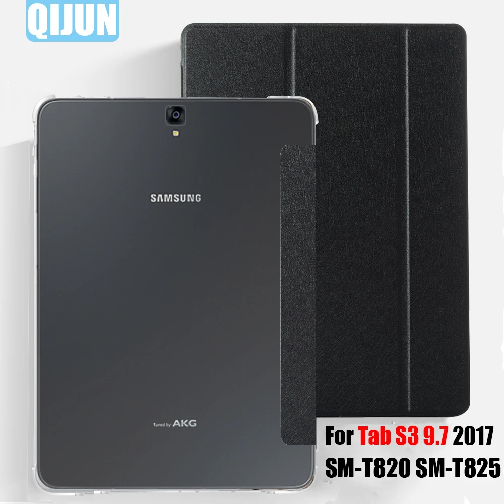 Шелковый чехол для планшета Samsung T825, кожаный чехол, трехскладной рукав, подставка, однотонный чехол, сумка для Galaxy Tab S3 9,7 2017