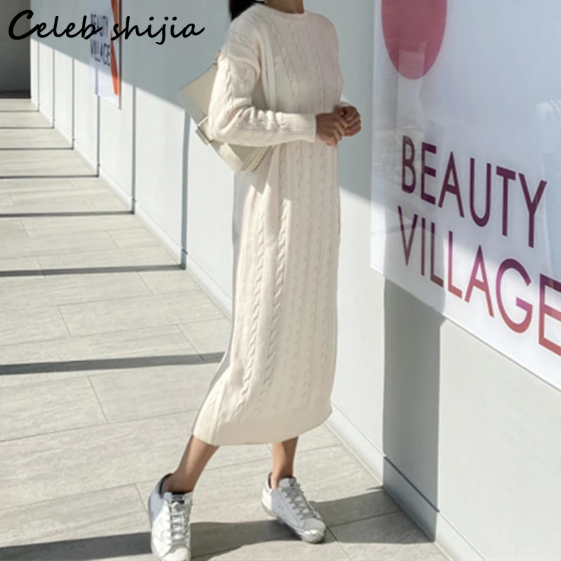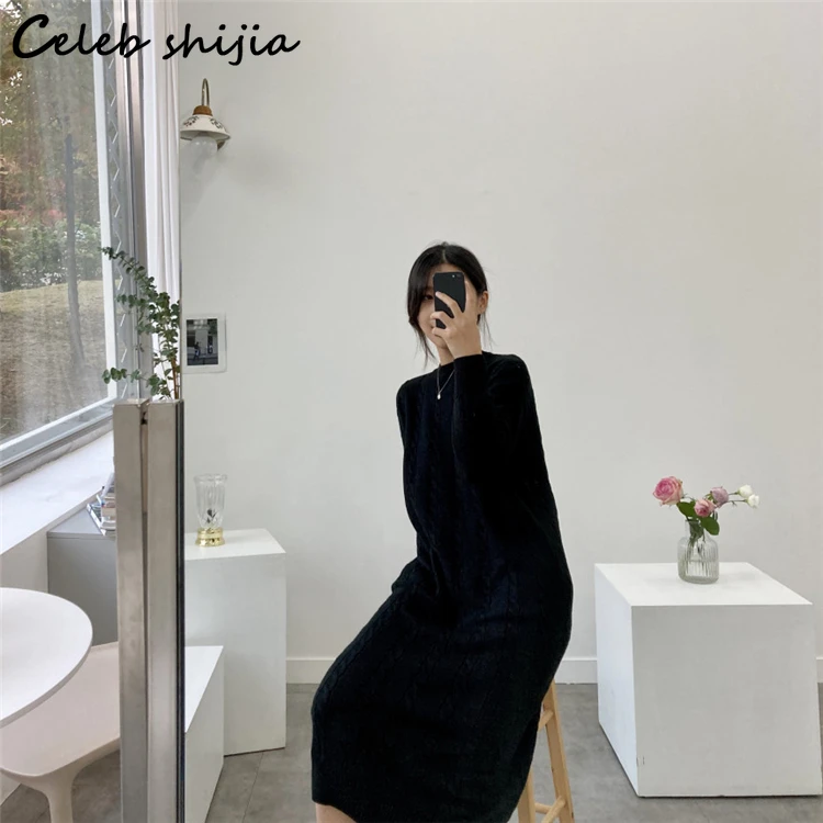 Женское вязаное платье-свитер SHIJIA, элегантное винтажное свободно...