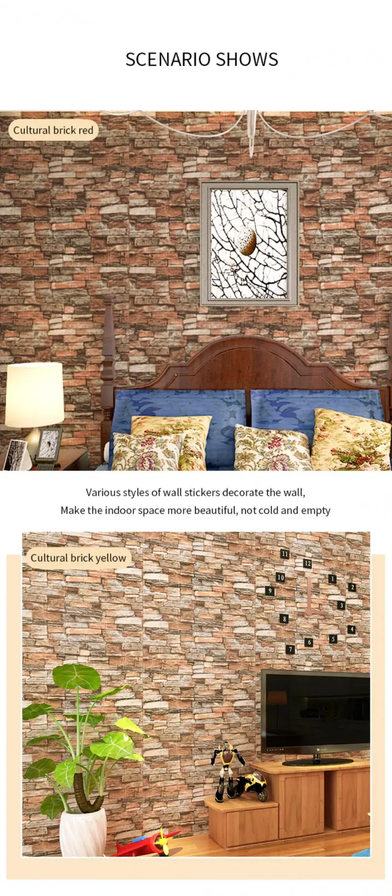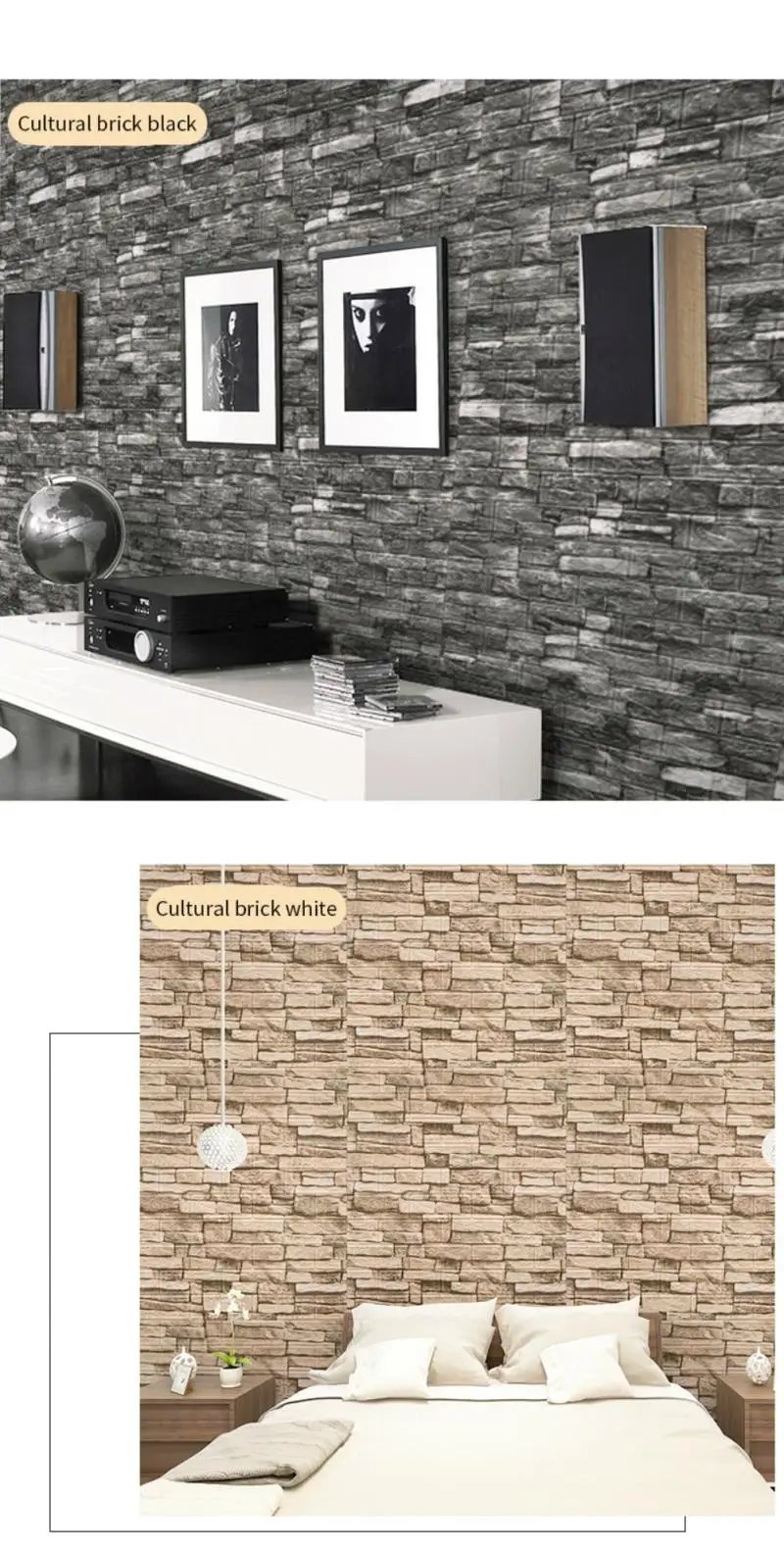 C. Многоцветные варианты: Эти 3D наклейки для обоев из пенопласта поставляются с различными цветами, которые можно смешивать и сочетать с эстетическим внешним видом и дизайном. 3D кирпичные обои, которые имеют белый, розовый, синий, серый, зеленый, черный, коричневый и другие цвета для вас, чтобы выбрать свой любимый цвет.