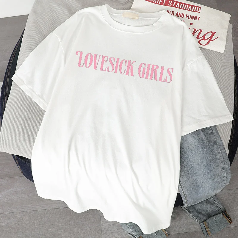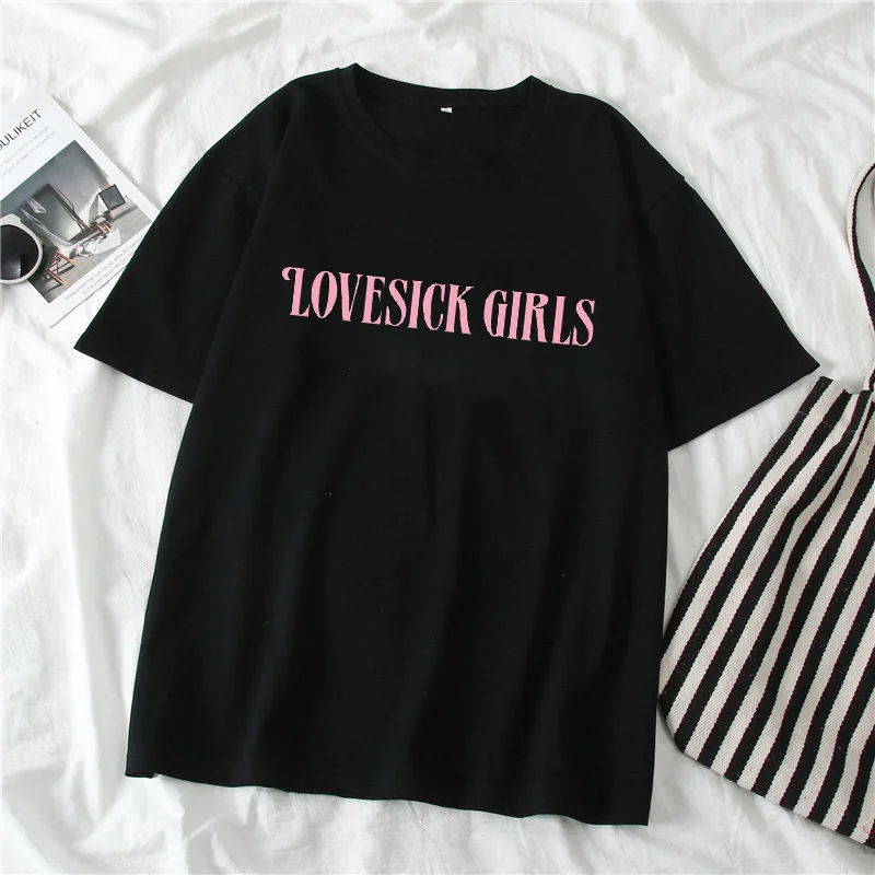 Как вам нравится Футболка Kpop, модная женская футболка Kawaii Harajuku lovesick girl LALISA, Женская Винтажная футболка с коротким рукавом Y2K