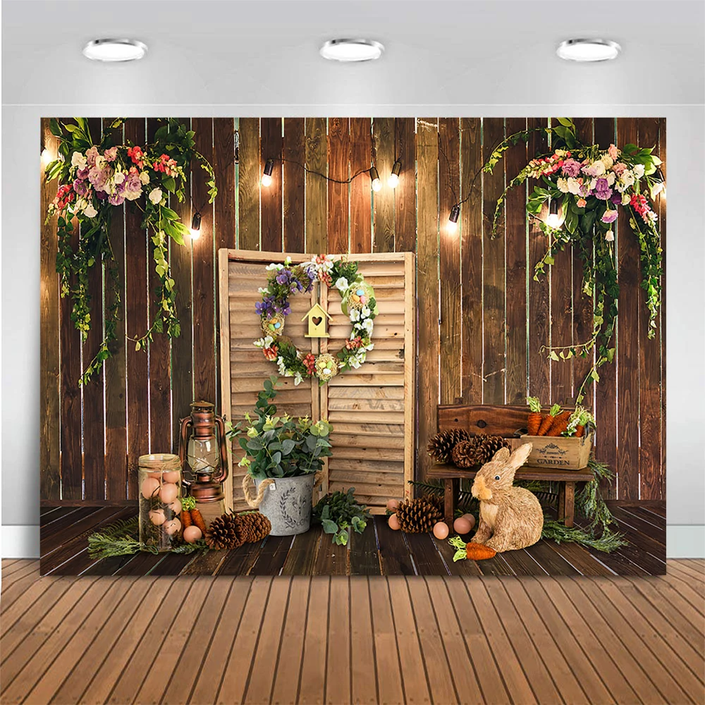 Mocsicka Пасхальный деревянный фон для детской фотосъемки портрет дети торт разбивать баннер кролик Декор трава фон весенний цветок Фотостудия