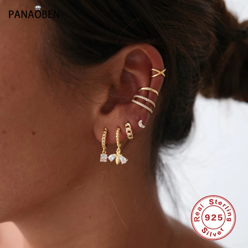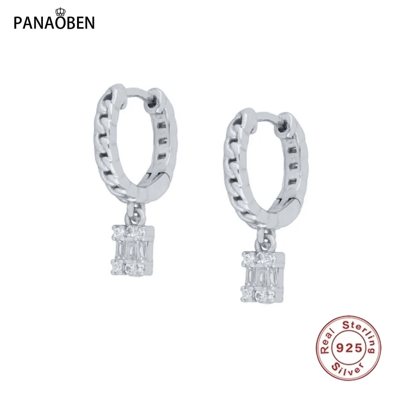 Женские серьги-кольца из серебра 925 пробы с квадратными кристаллами