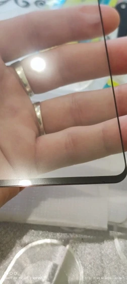 Скло повністю вкриває екран телефону(mi 9t), краї покрашені в чорний, але не закривають екран. По краях залишаються пустоти, рідини для заповнювання в комплекті нема.