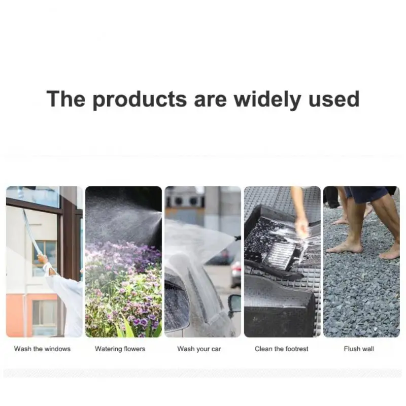 4. Грубая колонна: водяной спрей имеет большой диаметр выхода, быстрый поток, большой диапазон и большое воздействие. Подходит для мытья автомобиля, мытья грязи, орошения, смешивания стирального порошка и вспенивания автомобиля.