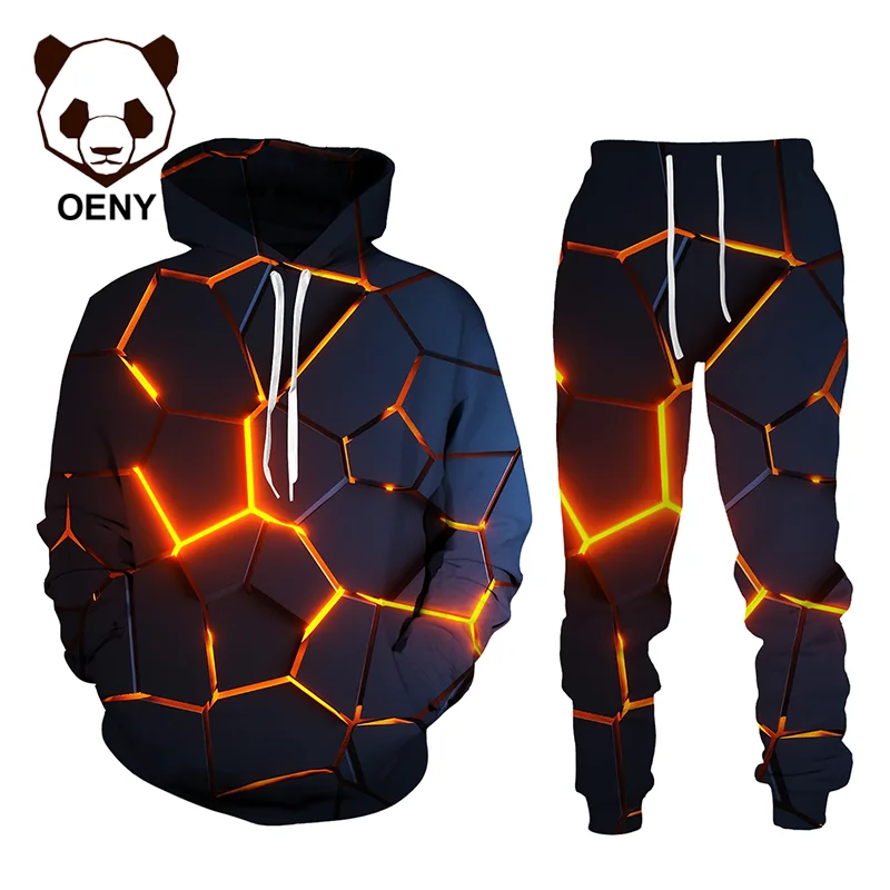 Новинка 2021, мужской комплект с капюшоном, модная мужская толстовка с 3D принтом, мужские спортивные брюки