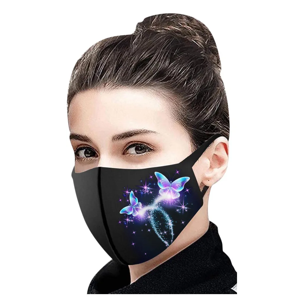 Маска для лица унисекс, многоразовая, с принтом бабочки, ветрозащит...