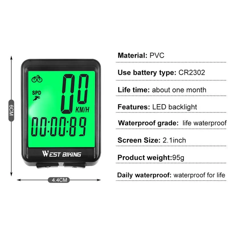 WEST BIKING велосипедный водонепроницаемый компьютер, цифровой спидометр, одометр, подсветка, беспроводной проводной велосипедный компьютер с секундомером на английском языке