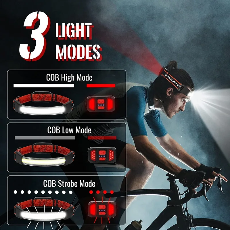 Pocketman COB светодиодный фары Перезаряжаемые головной светильник s Водонепроницаемый фара головки вспышки света светильник Отдых На Природе Головной фонарь с Предупреждение светильник