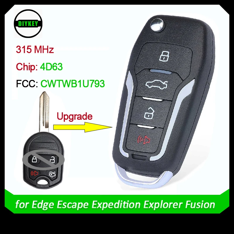 Пульт дистанционного управления DIYKEY для Ford Edge, экспедиций, Explorer, Flex Focus, Fusion, Mustang, Taurus, CWTWB1U793, 315 МГц, 4D63