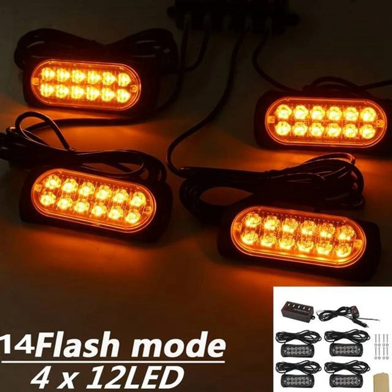 12 В 24 в автомобильный стробоскоп сигнальная лампа мигающий аварийный свет грузовик прицеп маячок лампа водонепроницаемый 14 режимов 4x12 светодиодов