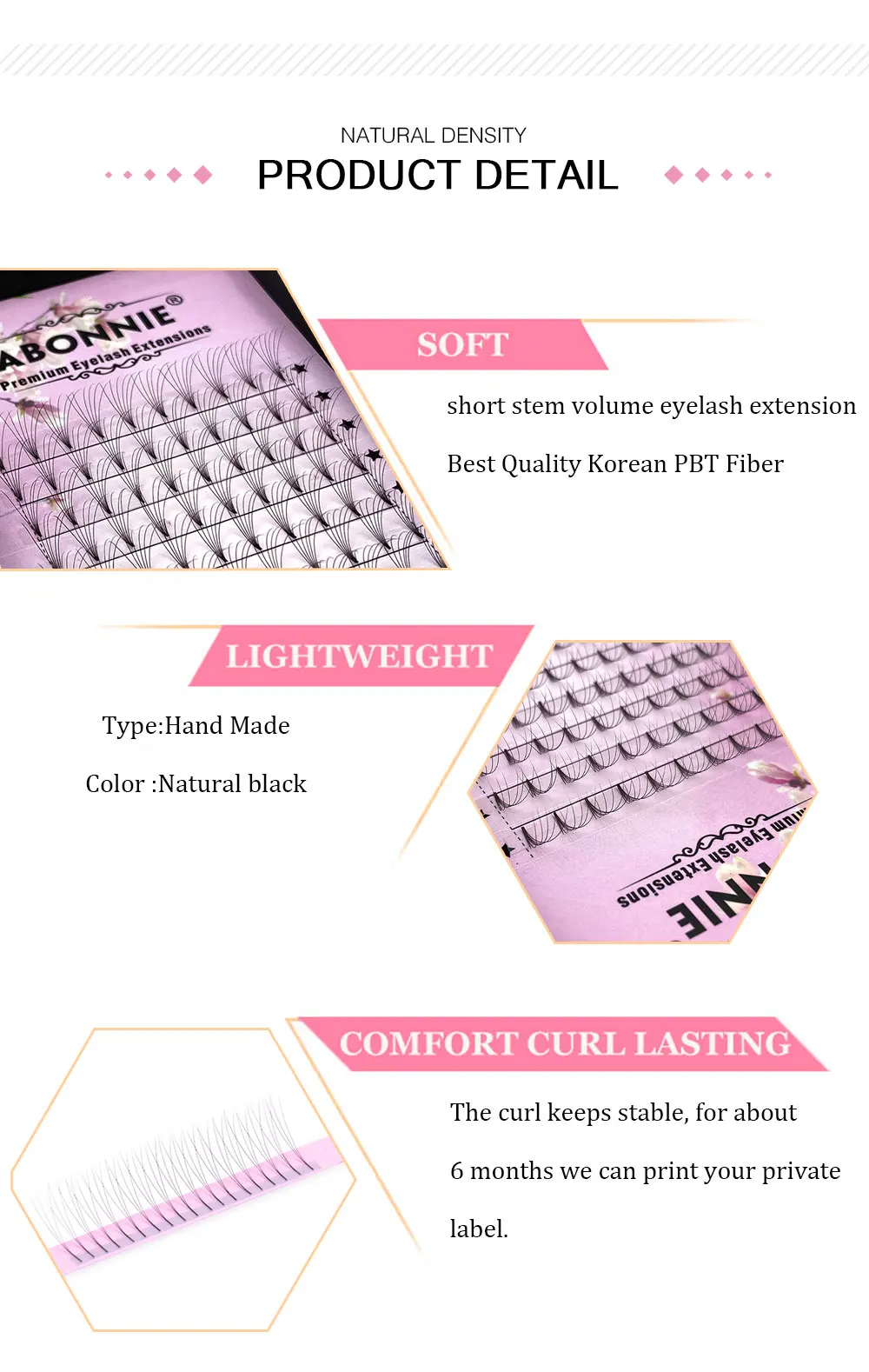 Накладные ресницы Abonnie с коротким стержнем, русские готовые объемные вееры из искусственной норки, готовые, для увеличения объема, для макияжа