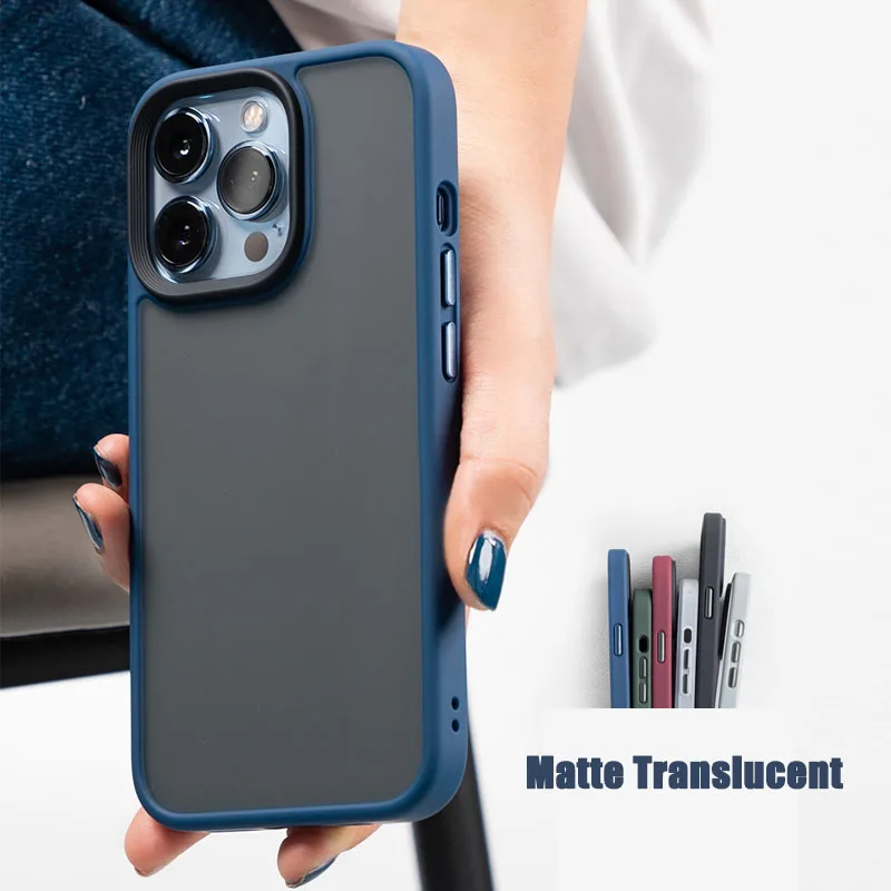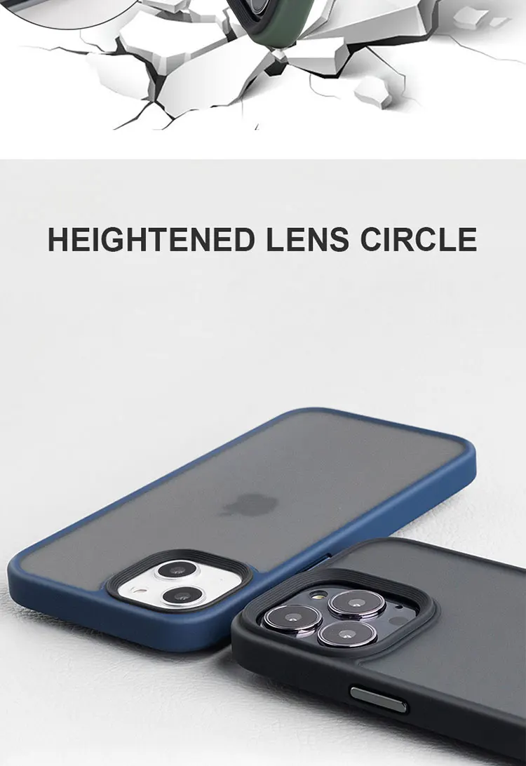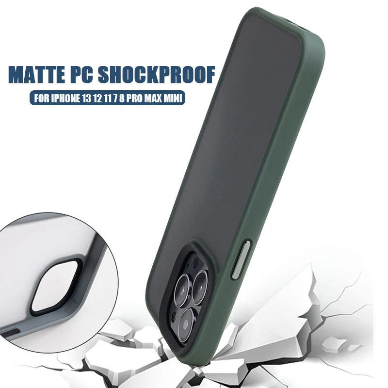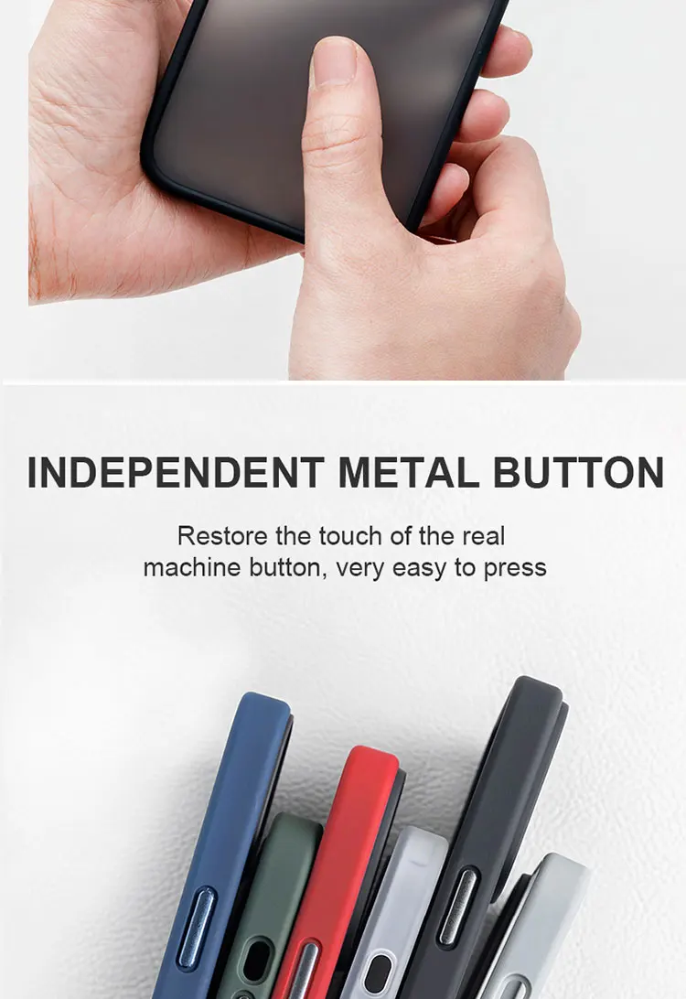 Роскошный противоударный бронированный чехол для iPhone 13, 12, 11, 7, 8 Pro Max, мини металлическая кнопка, защита объектива камеры, Прозрачный матовый чехол из поликарбоната