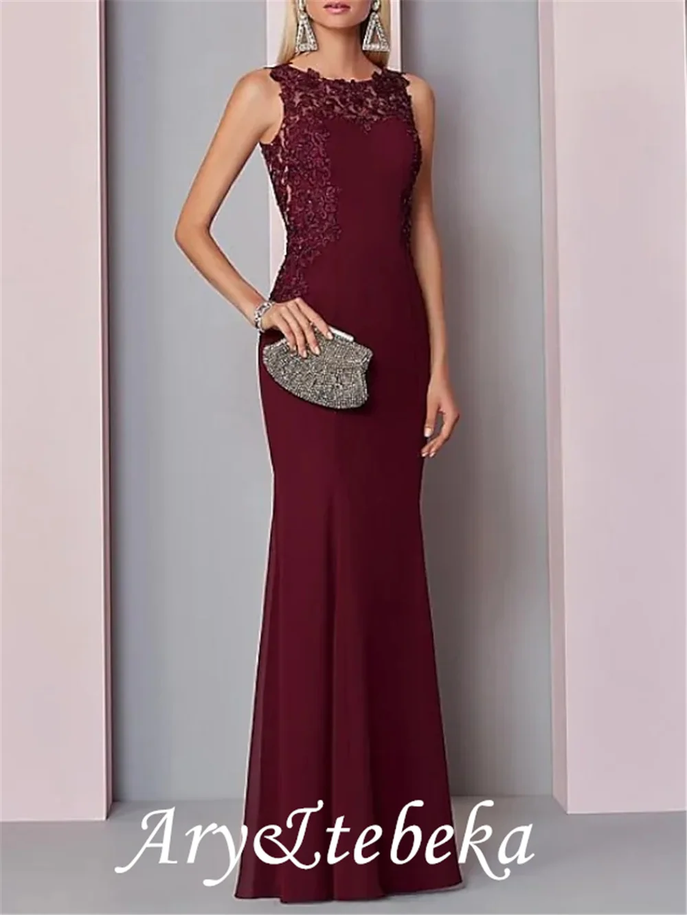 Платье-футляр для матери невесты, элегантное драгоценное платье до пола, шифоновый тюль без рукавов, модель 2021