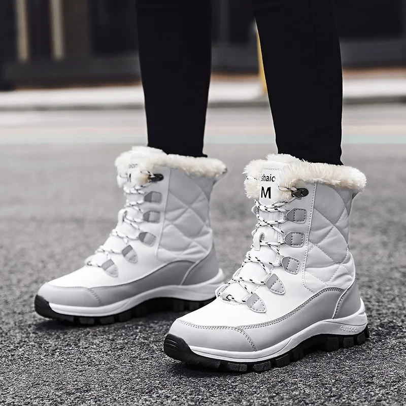 Зимние ботинки, женская зимняя обувь, высококачественные утепленные плюшевые зимние ботинки, удобная обувь на платформе со шнуровкой, женские ботинки