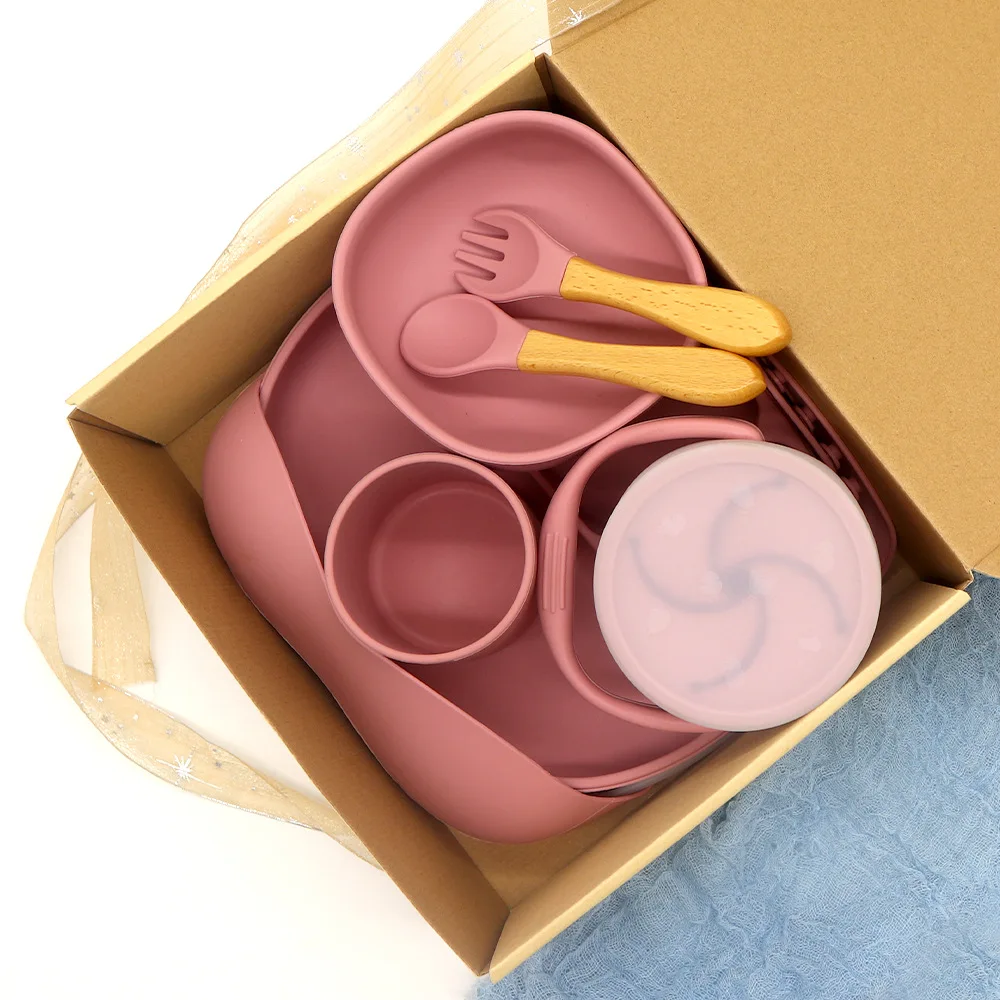 Детская посуда Coskiss, детская чашка, тарелка, блюдца, ложка для кормления, силиконовый набор, Детская Чаша для дозирования, нагрудники без БФА