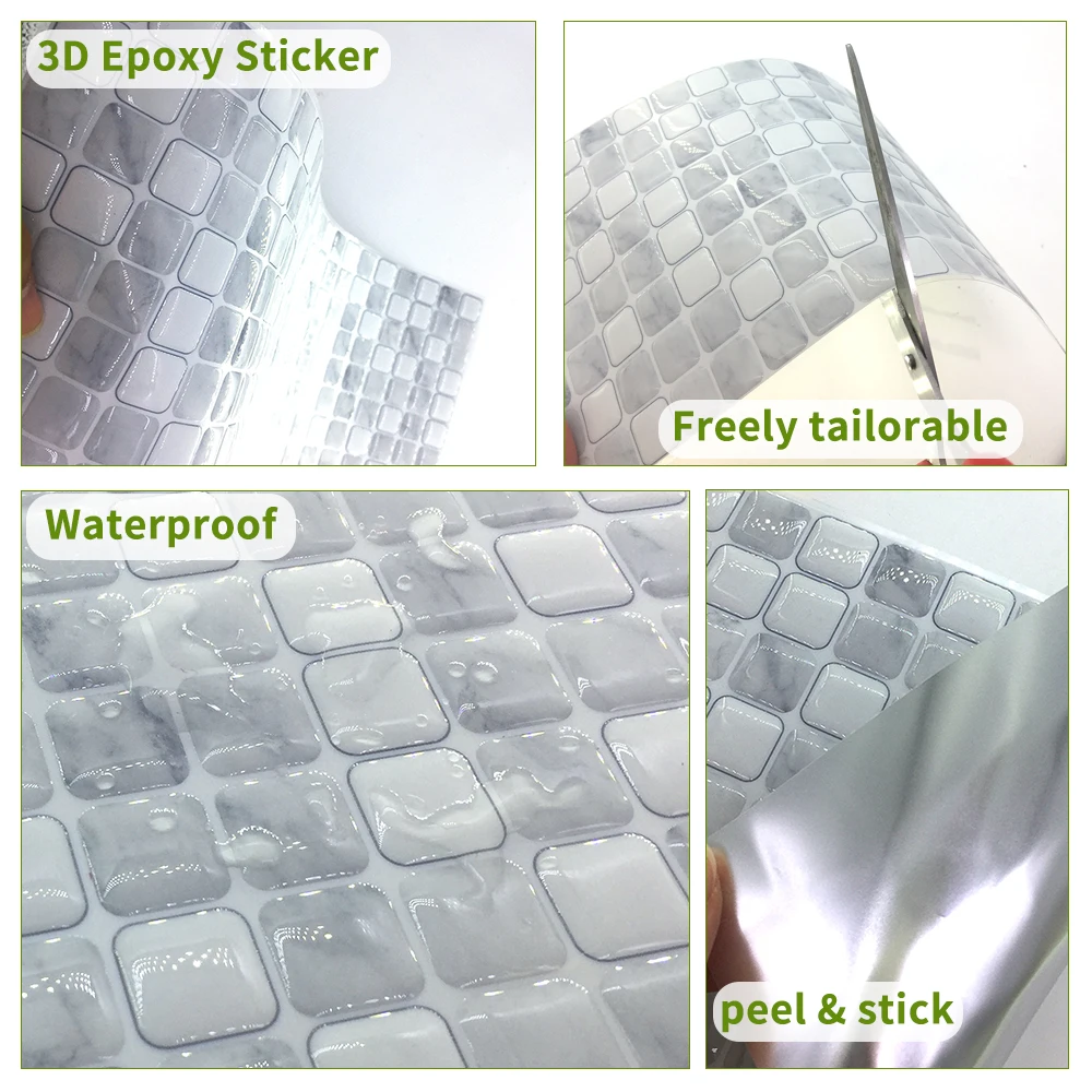 FunlifeМраморная белая мозаика, водостойкая 3D настенная наклейка s, наклейка на плитку, легко чистится, маслостойкая, для кухни и ванной