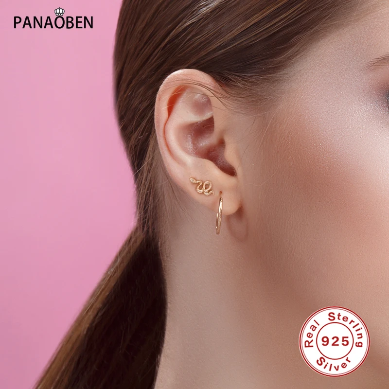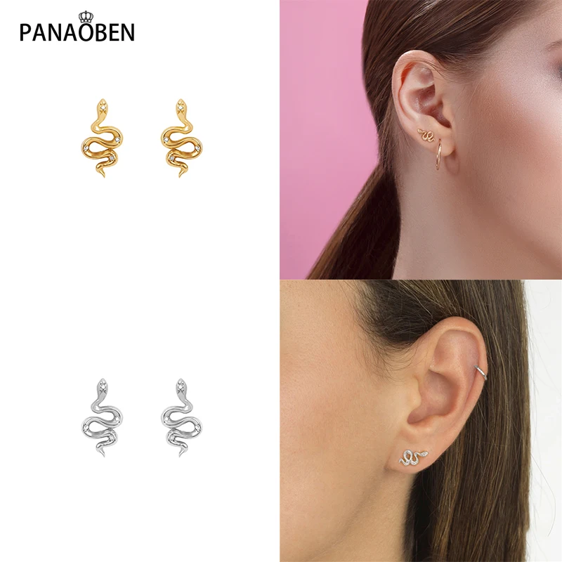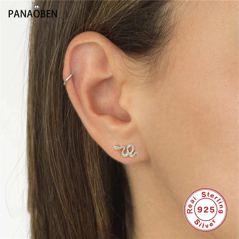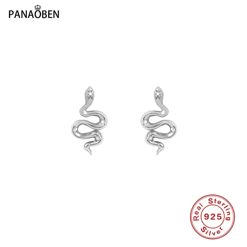 Женские серьги-гвоздики из серебра 925 пробы, со змеиным плетением