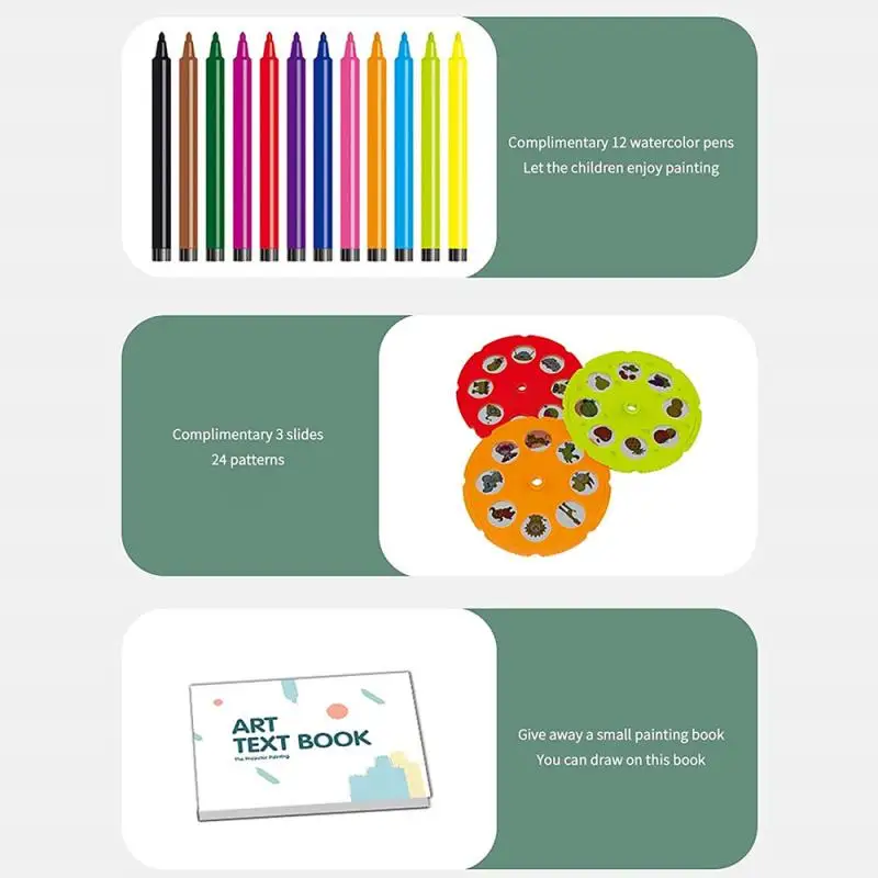 1 X чертежный проектор3 X проекционная пленка1 х Ткань для рисования12 акварельных ручек1 X книга для рисования