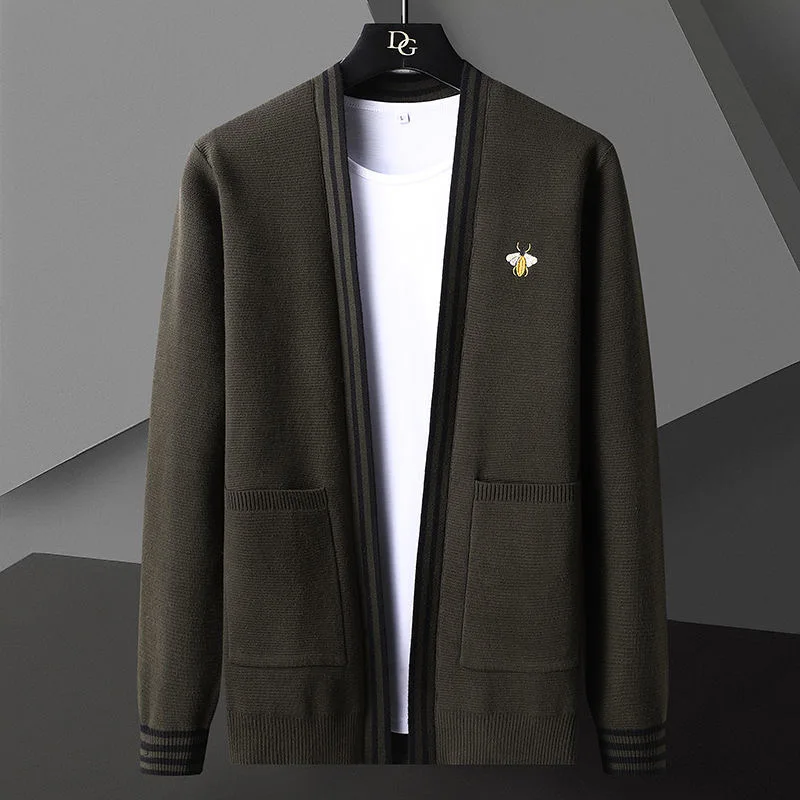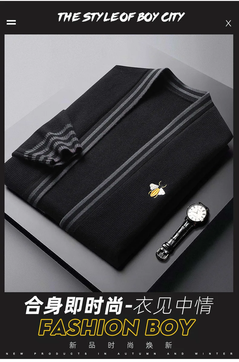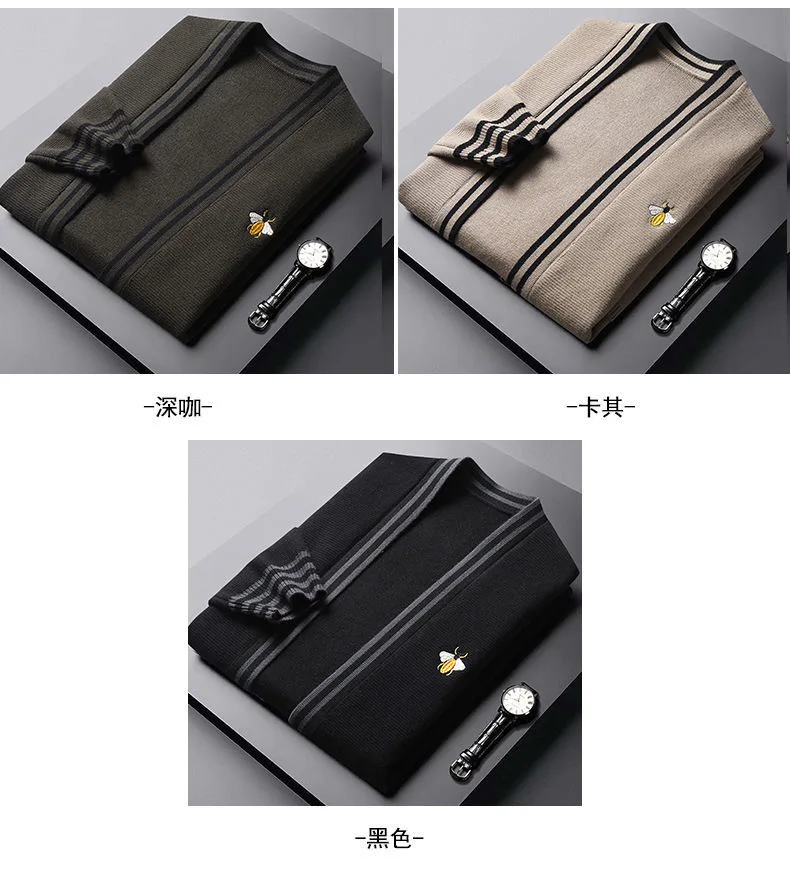 Высококачественный модный кардиган с вышивкой в виде пчелки, мужской свитер, пальто на весну и осень, Повседневная Корейская версия, верхняя одежда, свитер