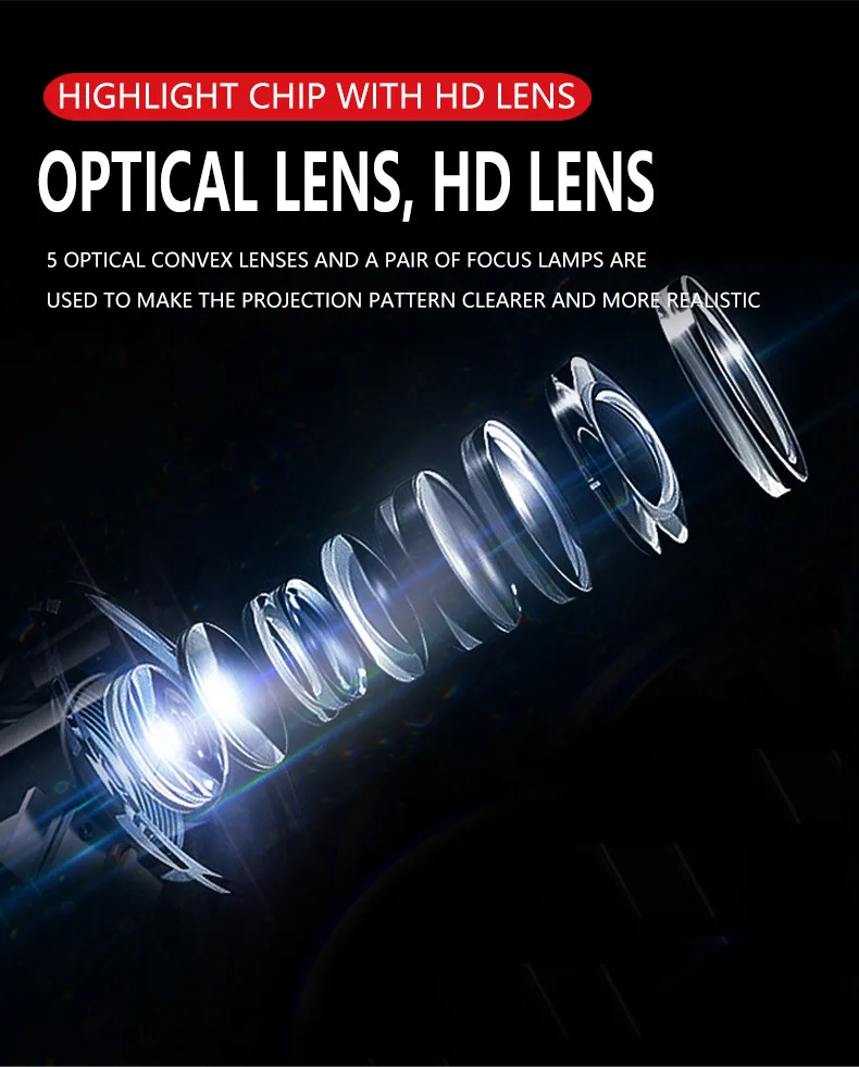 5 оптических выпуклых линз и пара фокусных ламп используются для того, чтобы сделать проекционный рисунок более четким и более REANSTIC