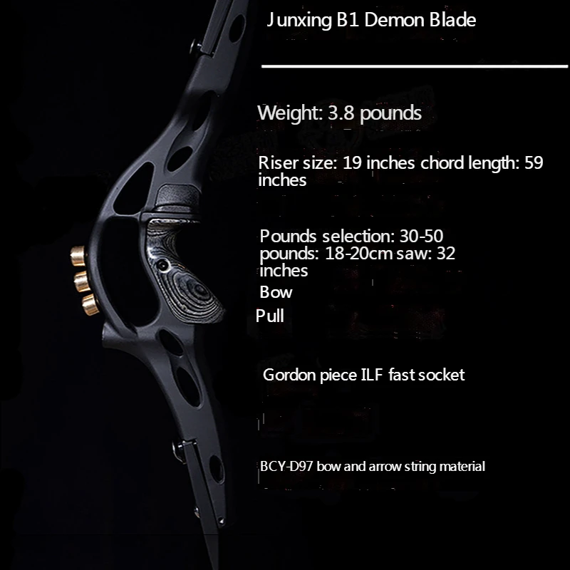 Модель: B11. Вес: 3,8 фунтов2. Размер жемчужины-19-дюймовое металлическое многофункциональные красивый охотничий лук ручка4. Выбор фунтов: 30-60 фунтов5. Международный общий интерфейс ILF6. Бант: 18-20 см имеет лучшую производительность7. Максимальное расстояние рисования: 32 дюйма8. Фильмы Gordon, импортированные из США9. BCY-D97 Профессиональный лук и стрела материал, импортированный из США,Черно-серый смешанный двухцветный бант