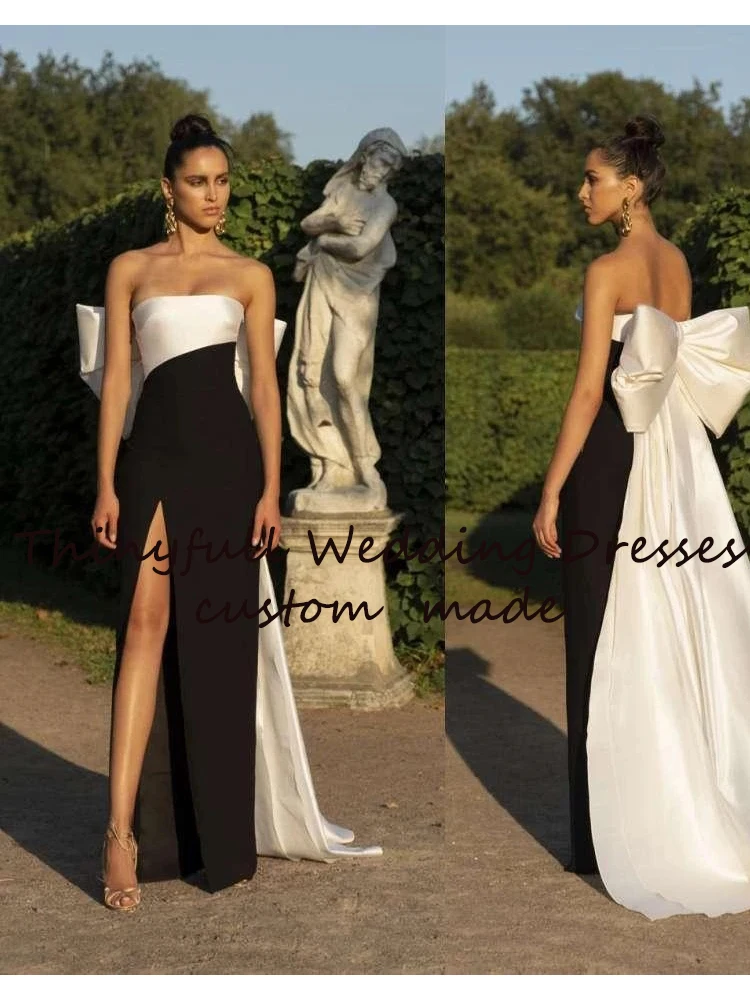 Черно-белое мягкое атласное длинное свадебное платье без бретелек с бантом без рукавов с высоким Боковым Разрезом Длинные свадебные платья невесты платья