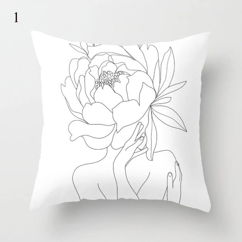 Квадратный чехол для подушки, черно-белый чехол с рисунком, чехол для подушки, дивана, чехол для подушки