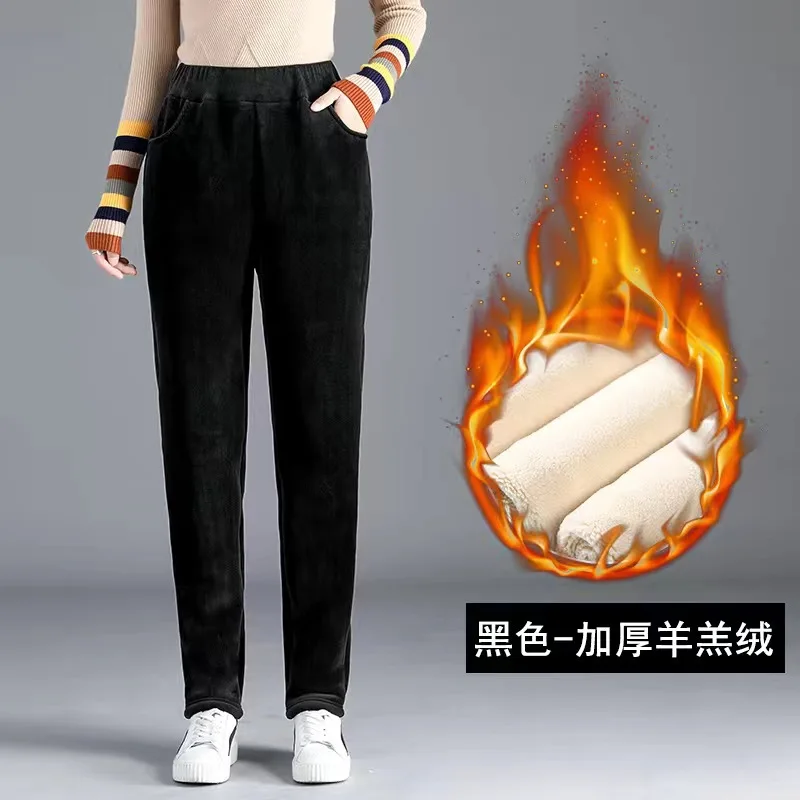 Женские вельветовые брюки, плотные теплые длинные брюки с высокой талией, повседневные свободные шаровары с плюшевой подкладкой, Осень-зима 2022