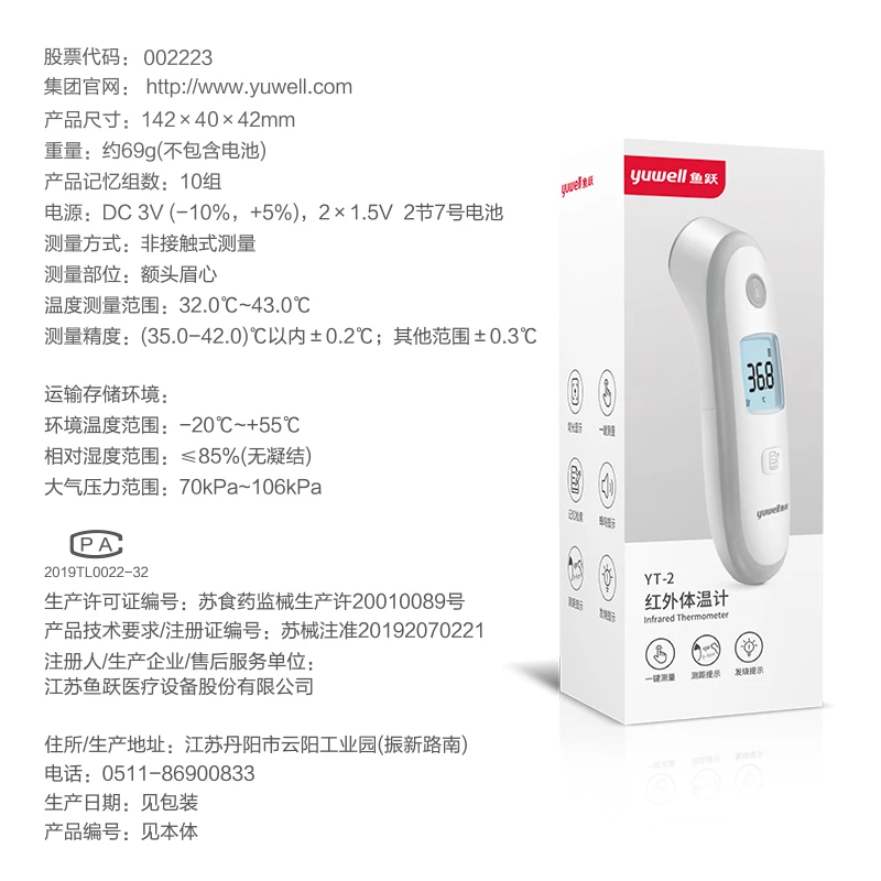 Цифровой термометр YUWELL, инфракрасный бесконтактный термометр, Бесконтактный ЛОБНЫЙ пистолет, высокоточный ЛОБНЫЙ медицинский дом