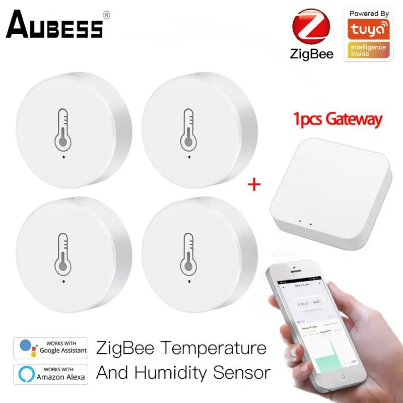 Aubess Tuya Smart ZigBee 3,0 умный датчик температуры и влажности с питанием от аккумулятора и приложением Tuya Smart Life Alexa