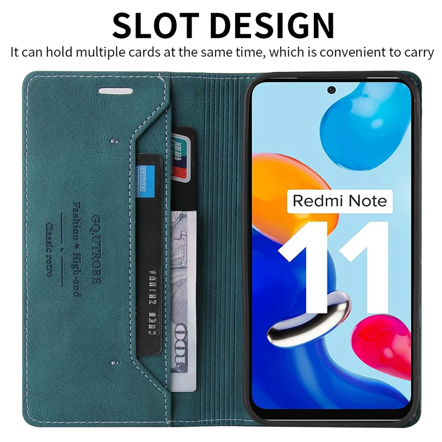 Роскошный кожаный чехол-кошелек с магнитной застежкой с защитой от кражи и щеткой для Xiaomi Redmi Note 11 4G 5G 11S 11S 11T 11 Pro 11E Pro 11 Pro +