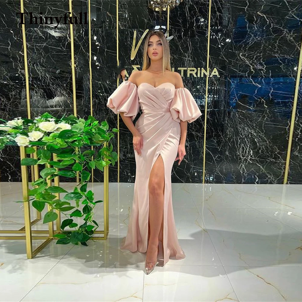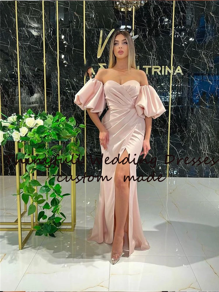 Женское вечернее платье с коротким рукавом, светло-розовое платье невесты с разрезом сбоку, платье для выпускного вечера, 2022
