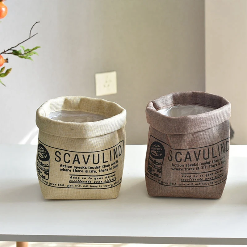 Маленькая сумка для хранения в полоску в горошек, подвесная сумка из искусственной джутовой ткани, цветочный горшок, косметичка, домашний декор