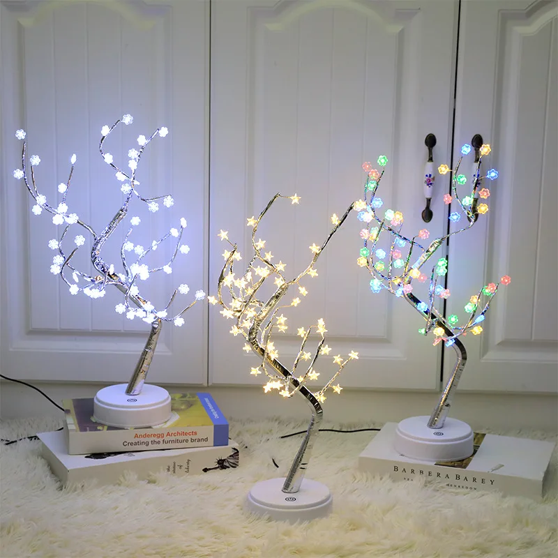 Сказочные Светодиодные ночные светильники дерево настольная лампа для домашнего декора комнаты Рождество Новый год 2022 украшение