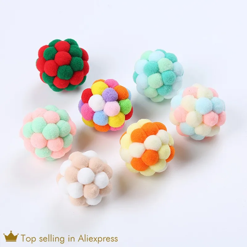 2. Разноцветные плюшевые шарики с колокольчиками, привлекают внимание кошек.