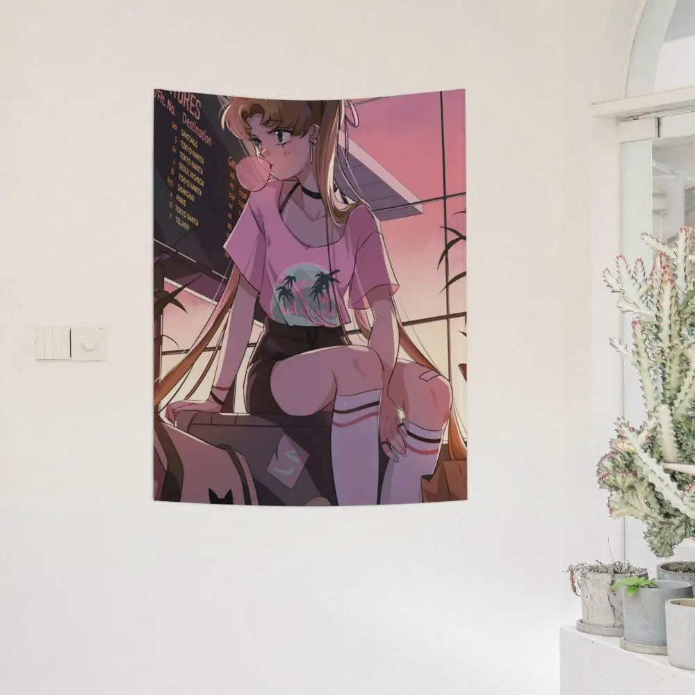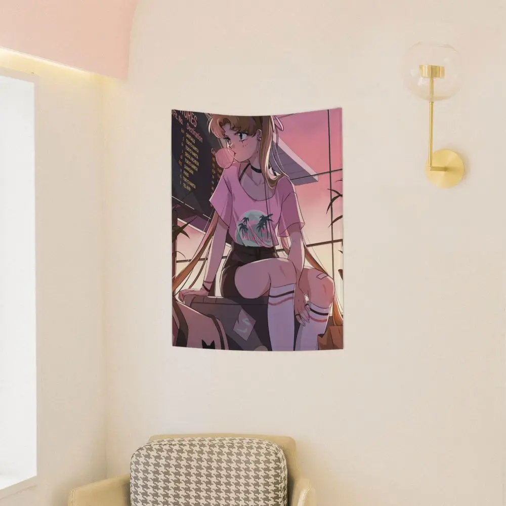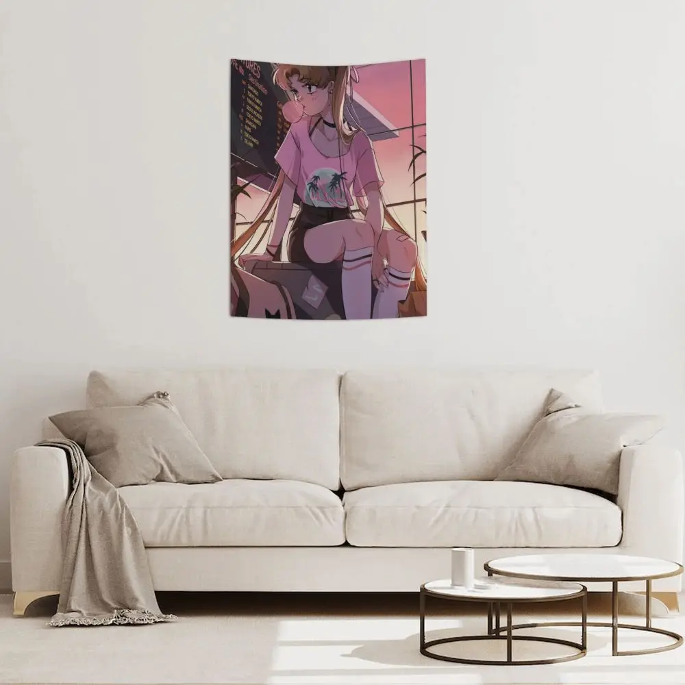 Гобелен в стиле хиппи с изображением аниме Луны девушки пузырьковой жвачки настенный розовый кавайный женский Декор на стену тканевый фон для творчества настенный гобелен