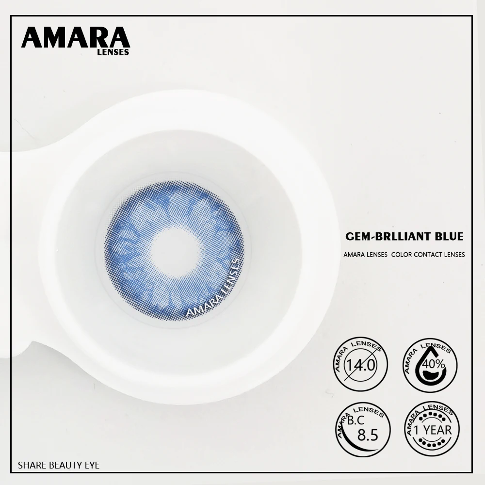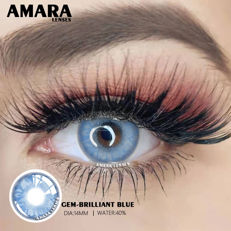 Цветные линзы AMARA ed 1 пара, линзы натурального цвета глаз, контактные линзы с драгоценным камнем для глаз, контактные линзы для контактов с годовым цветом, голубые