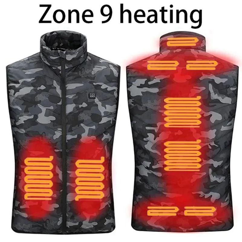 Жилет с подогревом градусов, мужской зимний жилет с умным подогревом, Хлопковая женская куртка с электроподогревом USB для кемпинга, пешего туризма, камуфляжный жилет