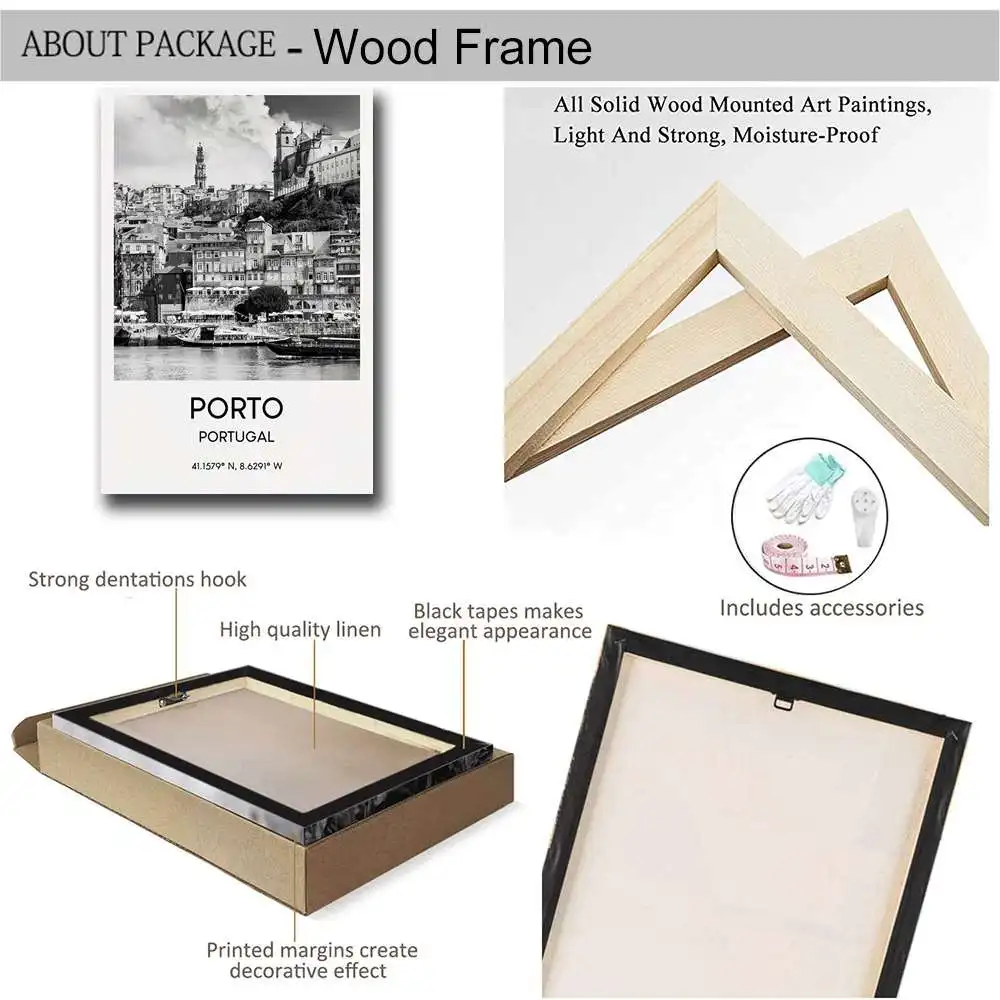 Черно-белый постер с изображением города Порто-Португалия для гостиной и домашнего декора