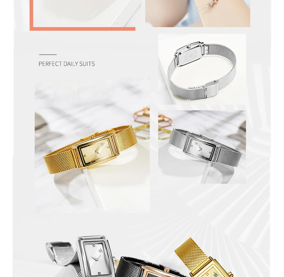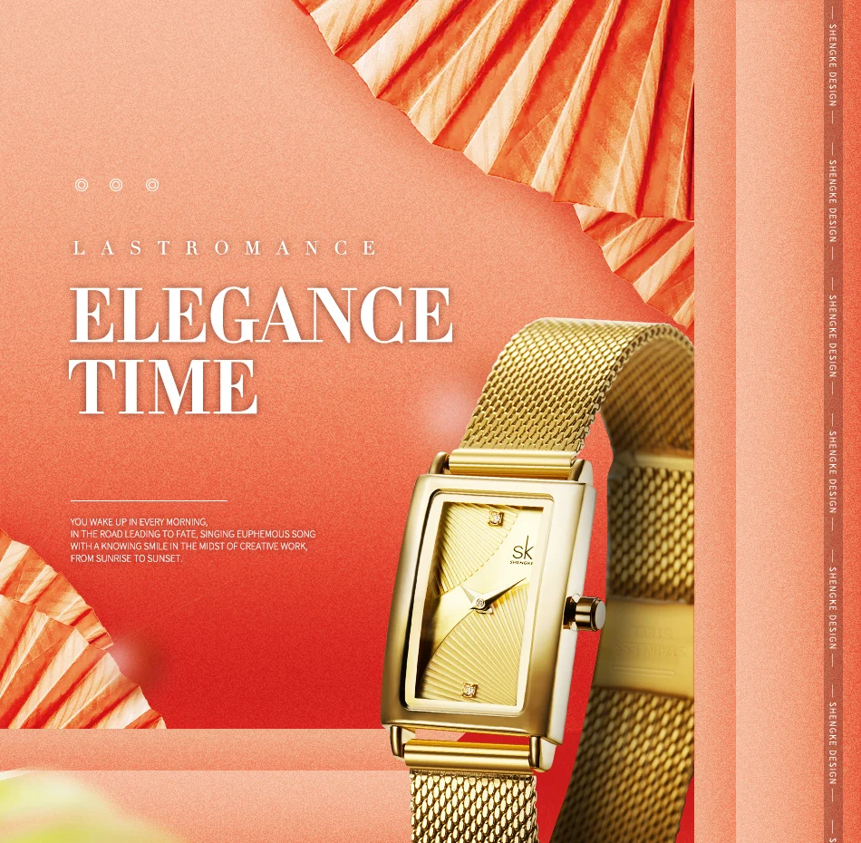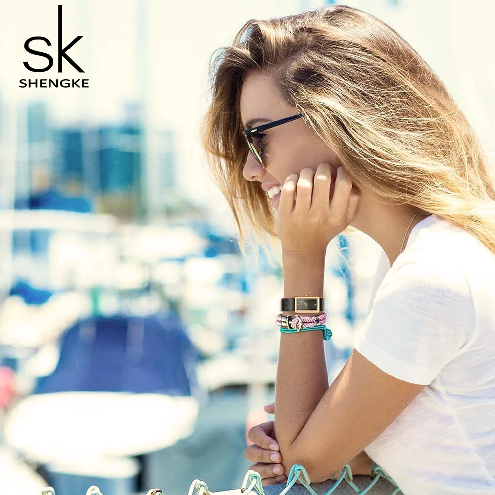 SHENGKE Модные прямоугольные кварцевые часы с циферблатом женские р...