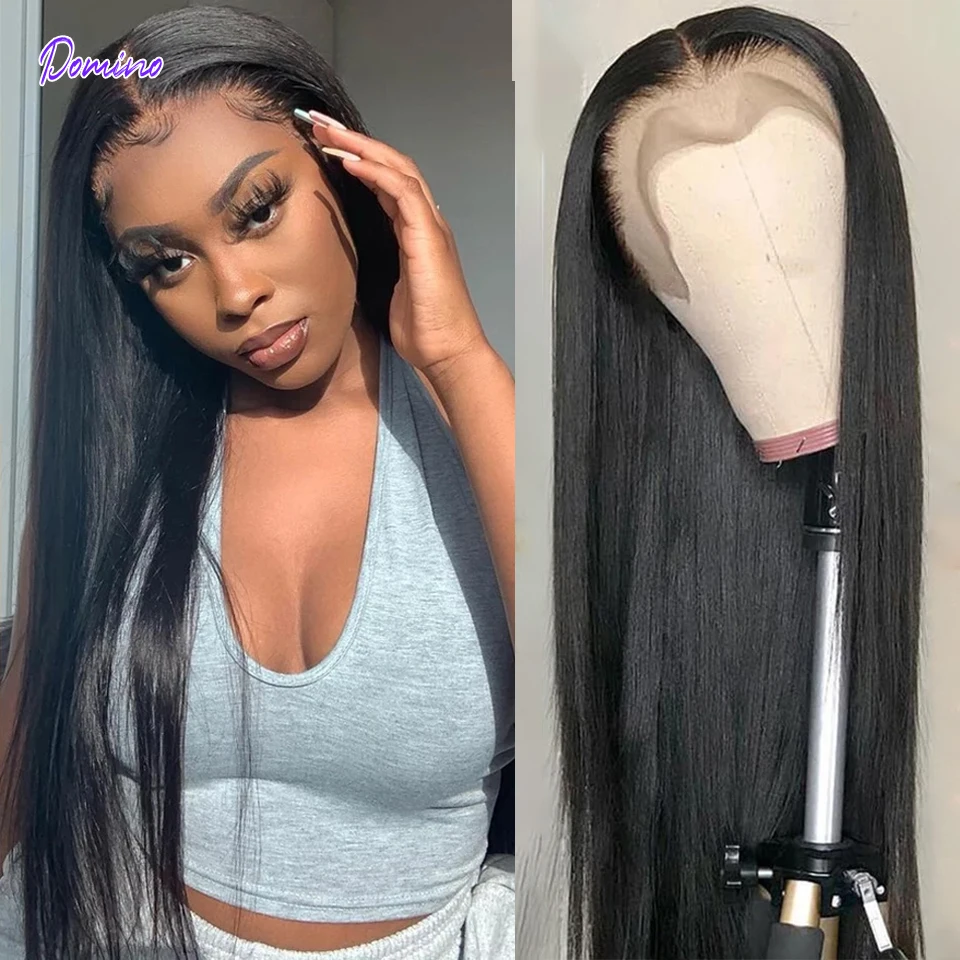 Домино 13X 4 Синтетические волосы на кружеве al малазийские прямые волосы Кружева Закрытие парик 4X4 парик шнурка прямые Синтетические волосы на кружеве человеческих волос парики для чернокожих Для женщин