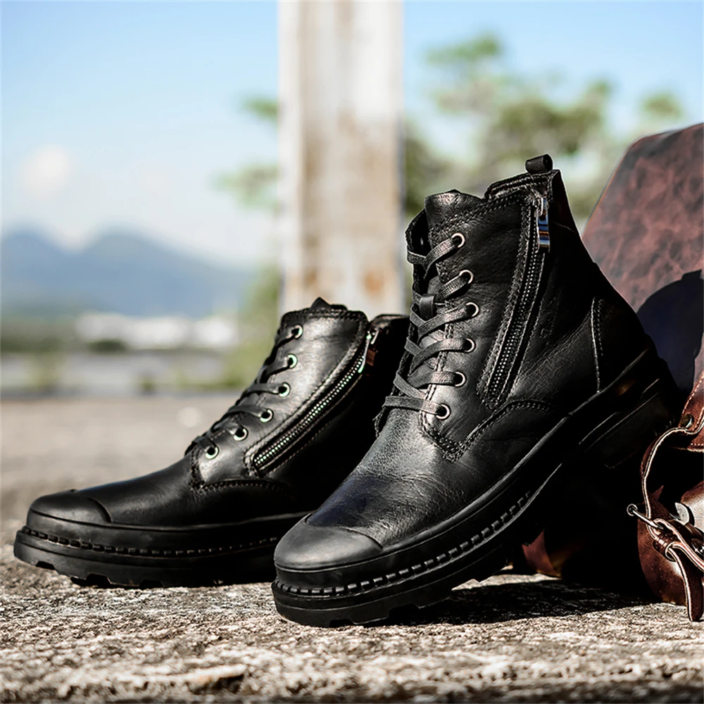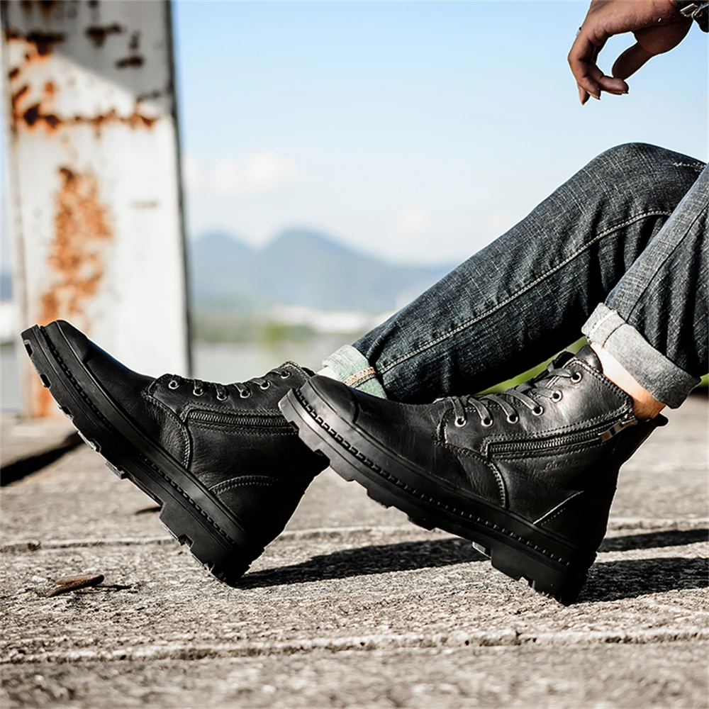 Мужские ботинки из натуральной кожи, высококачественные кожаные муж...
