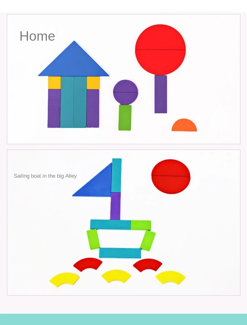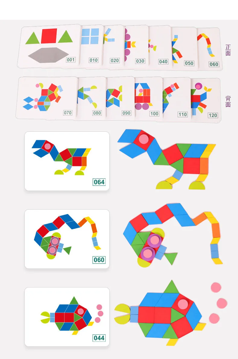 Детская деревянная головоломка с узором, разноцветная игрушка Тангр...
