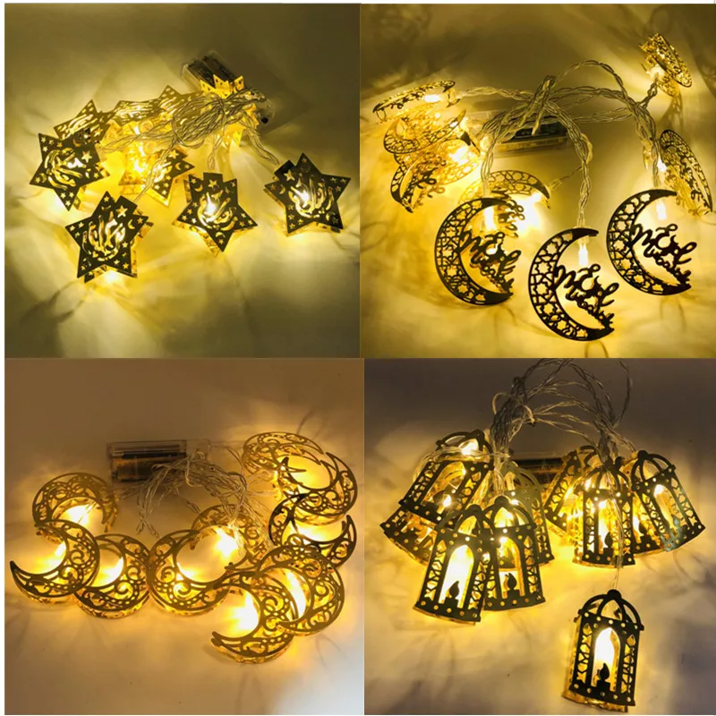 10 Огни Рамадана украшение Луна Звезда светодиодные гирлянды ИД Муб...
