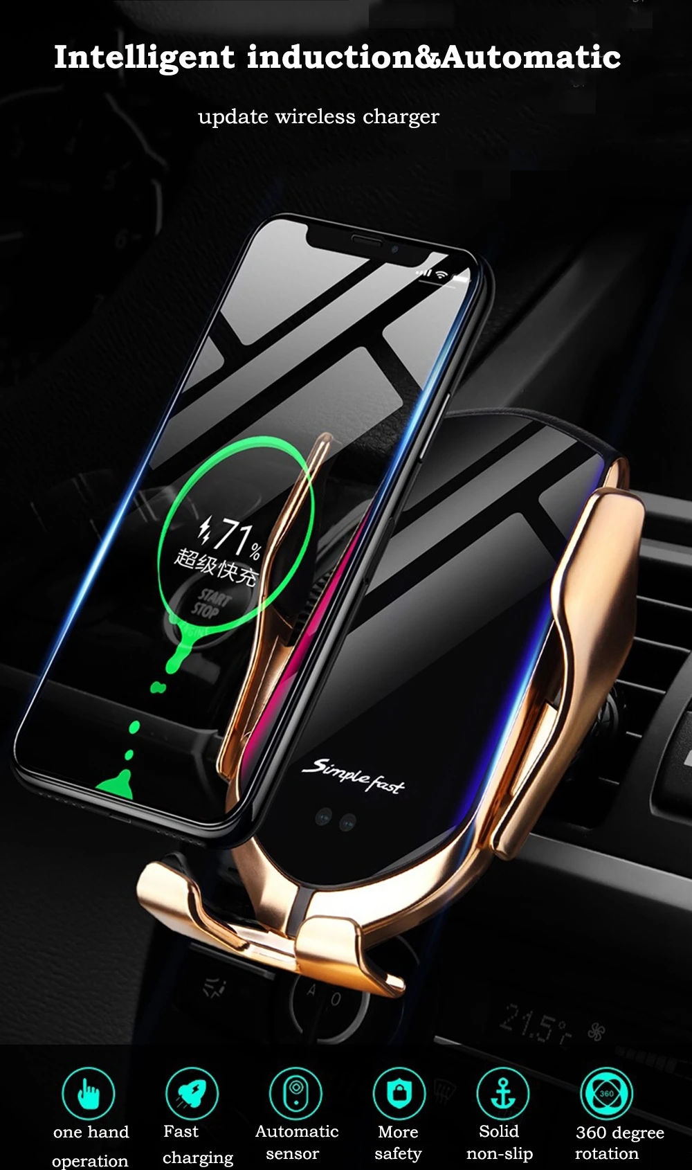 R2 умный инфракрасный датчик Автомобильный держатель для телефона Подставка для iPhone 12 11 Xiaomi 10W QI Беспроводное зарядное устройство с креплением на вентиляционное отверстие