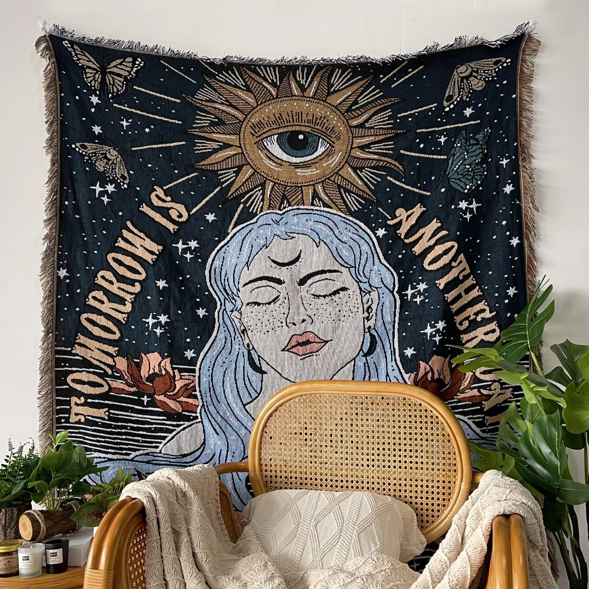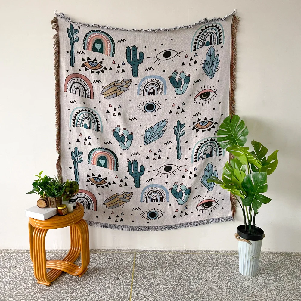 Тканое одеяло с рисунком Мистических Глаз, Настенный Ковер, декор для дивана, кровати, комнаты, кисточка, нитка, одеяло, большой плед гобелен, пикник, коврик