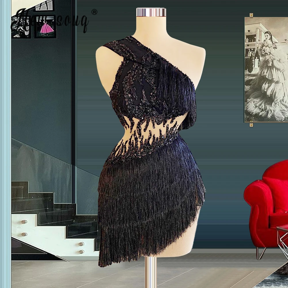 Соблазнительные Черные коктейльные платья на одно плечо, арабские облегающие платья для официальвечерние, мини коктейльное платье для выпускного вечера