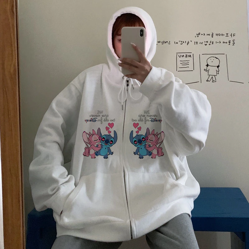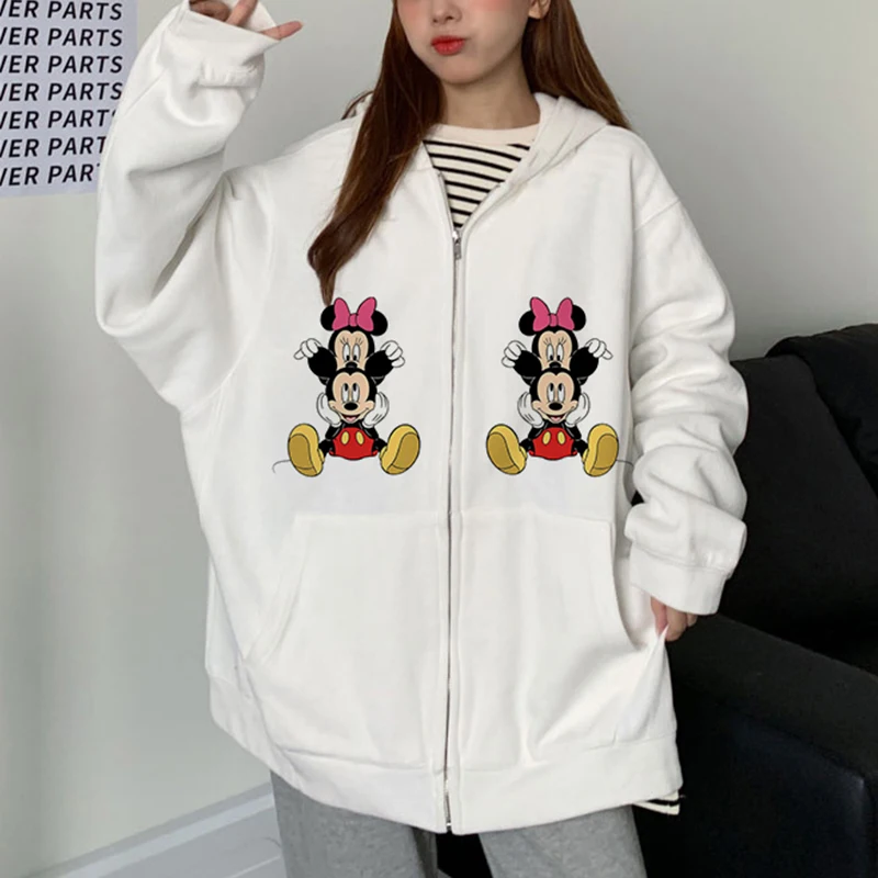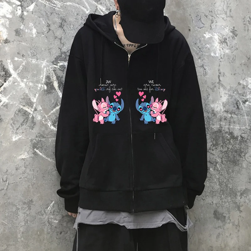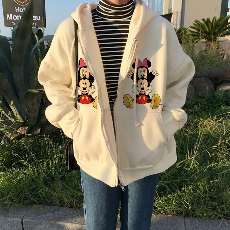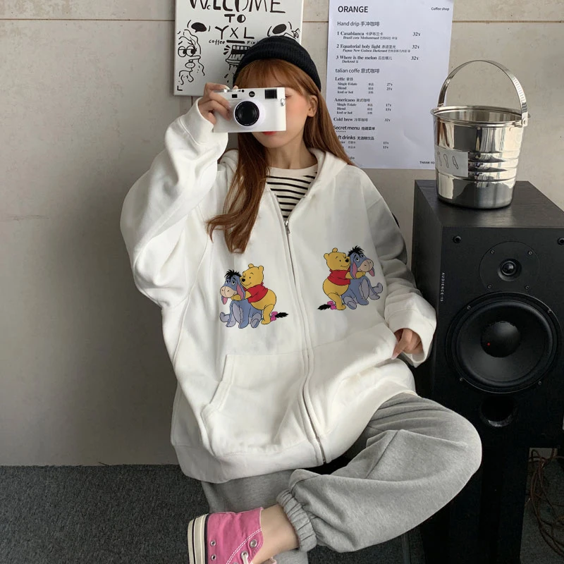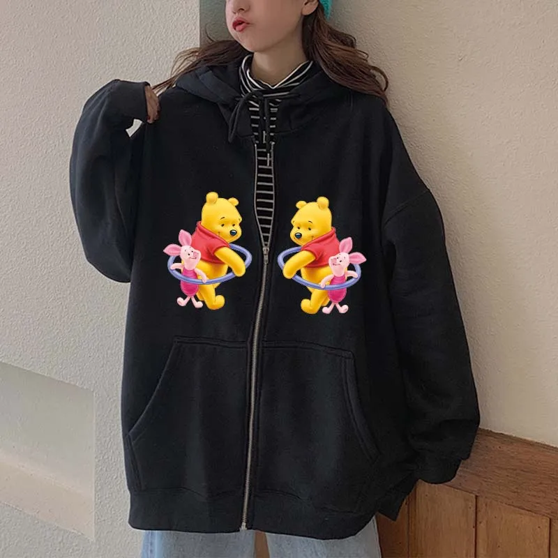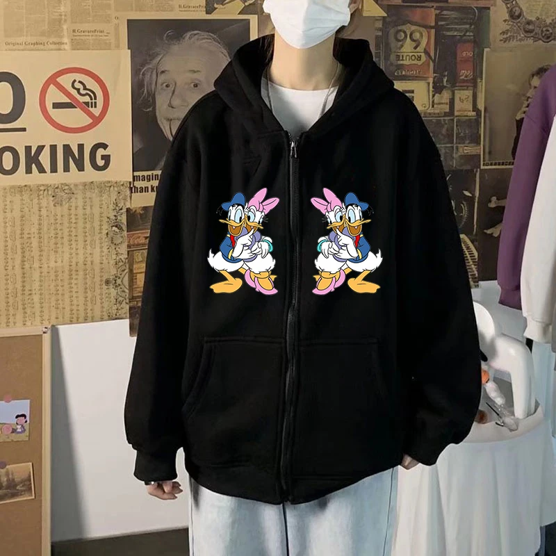 Черные женские свитшоты с длинным рукавом и молнией с изображением семьи Диснея Микки Мауса Дональда Дака Винни Пуха Стича мультфильмов