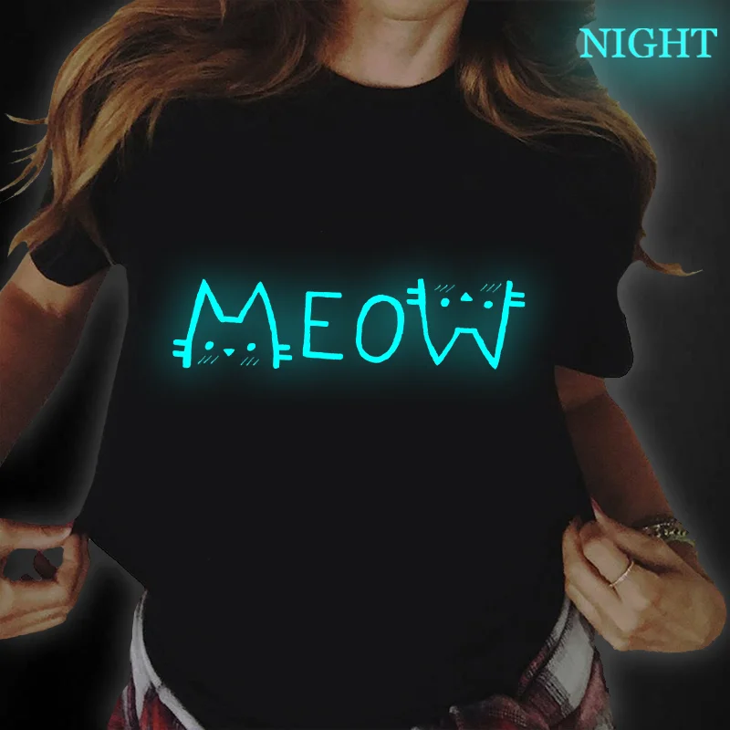 Забавная Женская одежда с графическим котом и надписью, Милая женская светящаяся одежда 90-х годов, женские футболки, топы, женская футболка, светящаяся женская футболка