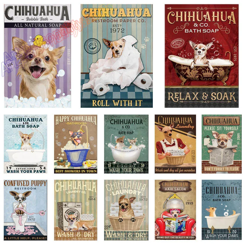 Чихуахуа, собака, мыло для ванны, винтажный Металлический Настенный декор, новинка, ванная комната, туалет, ретро-постер, кабинет 8x12 дюймов